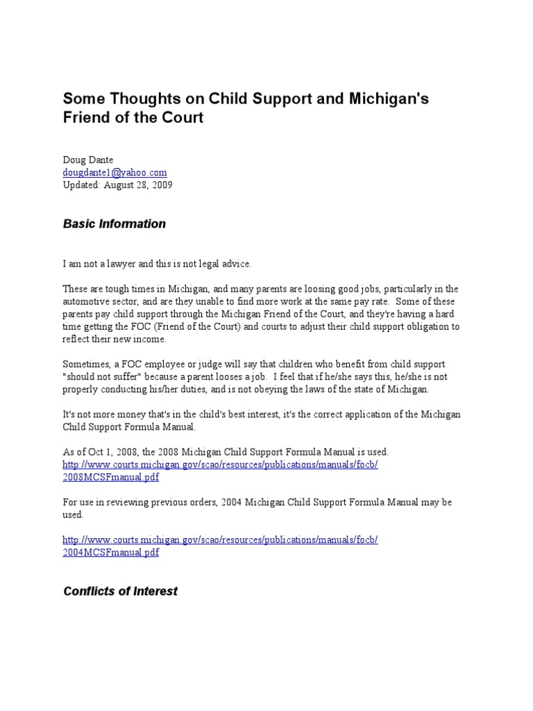 Michigan Friend Of The Court Child Support Modification Request