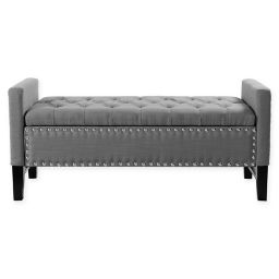 Linon Loire Cabriolet Linen Nailhead Bedroom Bench In Washed Gray