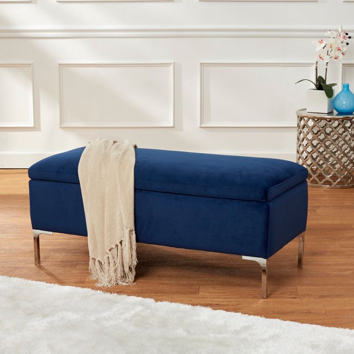 Velvet 40 Inch Storage Bench With Metal Legs In Navy Bed Bath