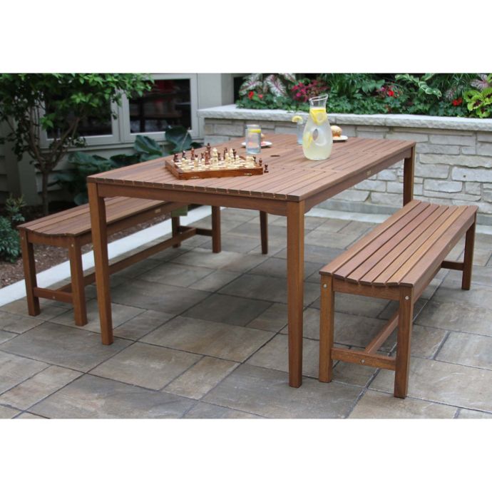 Outdoor Interiors 3 Piece Eucalyptus Bench Patio Dining Set In