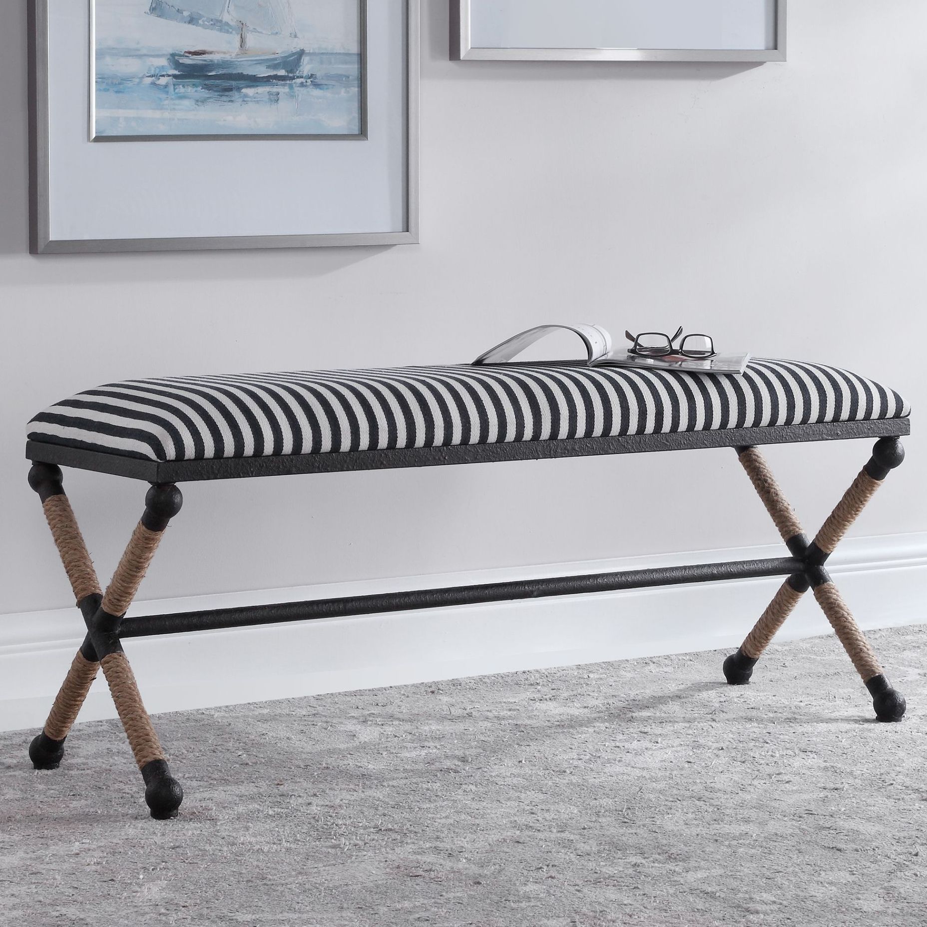 Uttermost Accent Furniture Benches 23527 Braddock Striped Bench