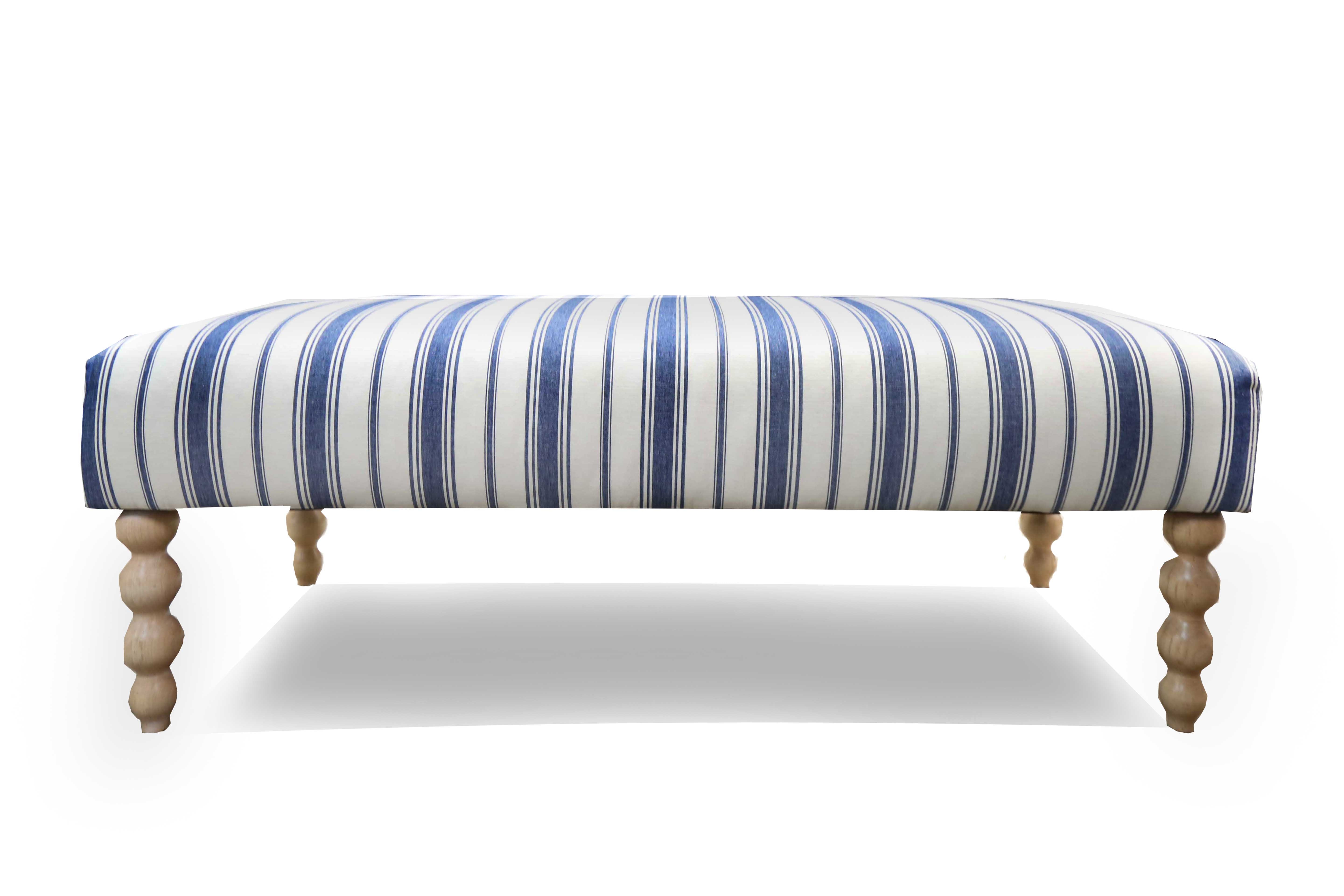 Cayden Bench In Blue And White Striped Fabric
