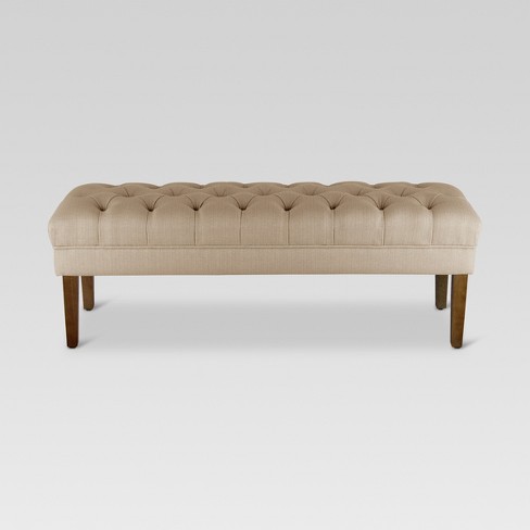 Brookline Tufted 50 Dining Bench Chestnut Finish Oyster