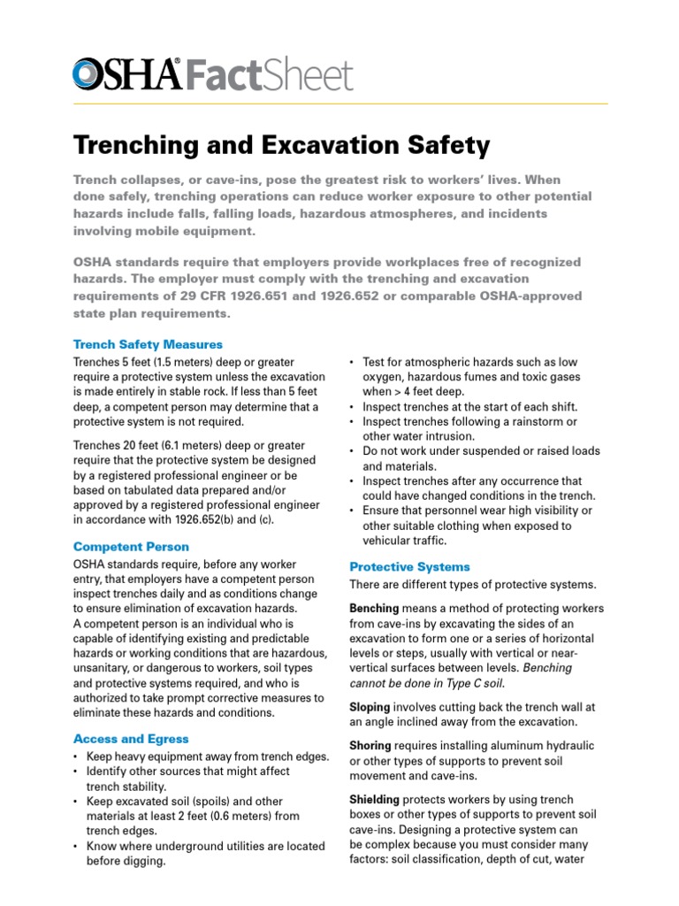 Trench Excavation Fs Occupational Safety And Health