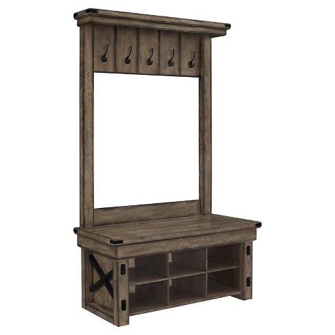 Entryway Rustic Wood Hall Tree With Storage Bench Barnwood Bjs